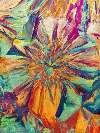 Macro photo of a crystal formation under polarized light. Taken at 10x magnification and focus stacked with Helicon Focus. Download contains 1920x1080, 2560x1440, and 3840x2160 wallpapers.Related content