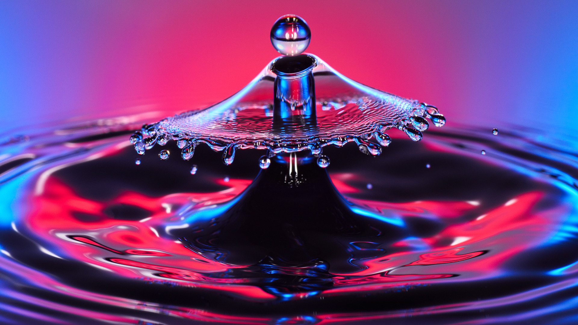 Water drop collision photography. Free download contains 1920x1080, 2560x1440, and 3840x2160 resolutions.