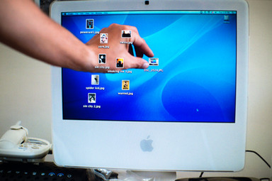 i know how you did it. back of the computer is not seen. you made the speakers and the wallpaer your hand and when you took this picture you put your hand alligned to the other han. the speakers were alligned too!
