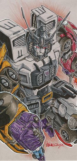 I've never seen Menasor look this badass ever! I especially like Bumble Bee running away from him. Awesome artwork!!