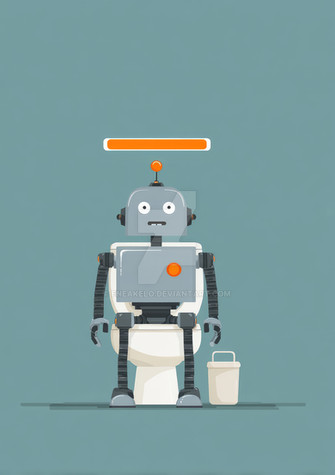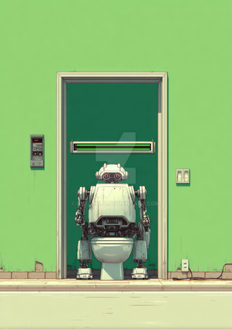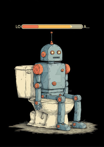 #artificialintelligence #cartoon #comical #contemplation #fi #funny #futuristic #graphic #green #humorous #illustrative #orange #please #quirky #reboot #retro #robot #sci #tech #thinking #toilet #unique #vintage #wait #whimsical #brainloading #art