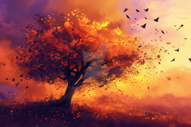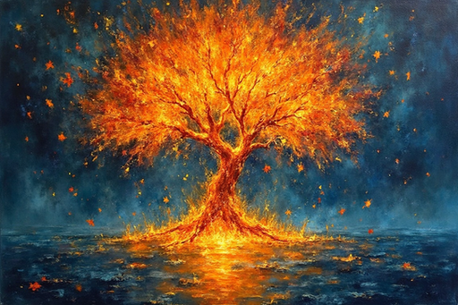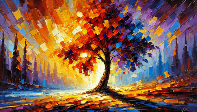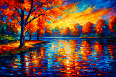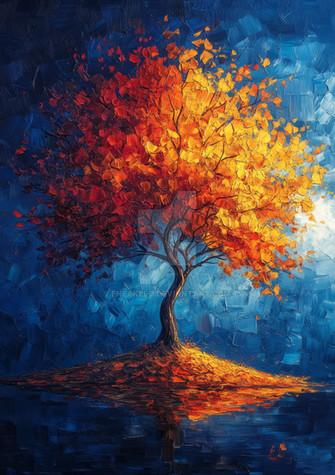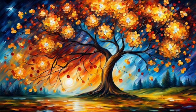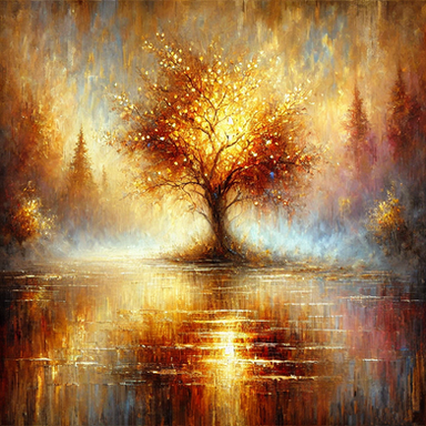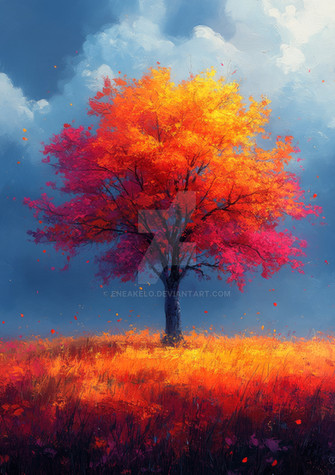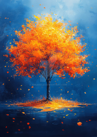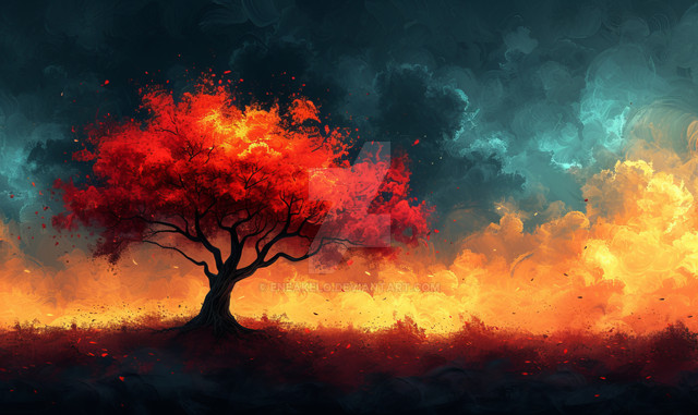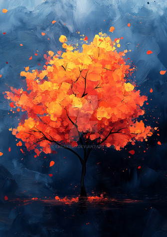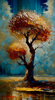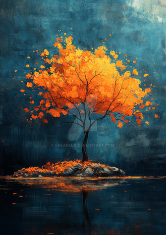 #digitalart #digitalpainting #black #blue #botanical #brushstrokes #contemporaryart #darkbackground #depth #energy #expressive #foliage #impasto #landscape #luminosity #modernart #nature #painterly #painting #red #reflection #solitary #tranquility #tree #vibrant #warmcolors #water #yellow #art