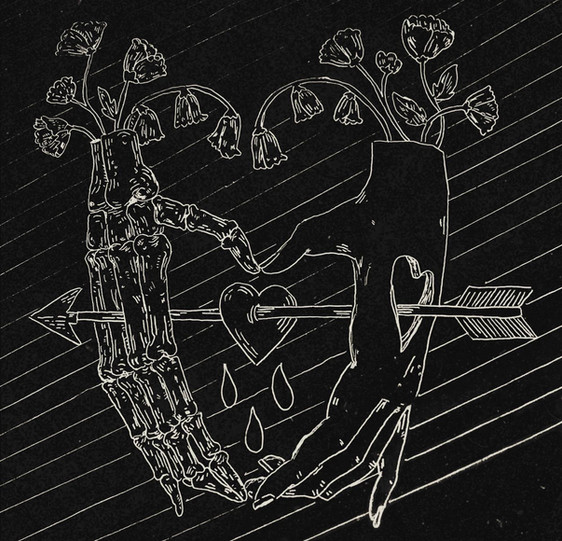 #skull #gothic #affection #anatomy #artistic #blackbackground #bones #contrast #darkart #death #drawing #eerie #flowers #heart #illustration #life #love #macabre #romance #romantic #roses #sweet #symbolic #unique #vintage #skeletonhands