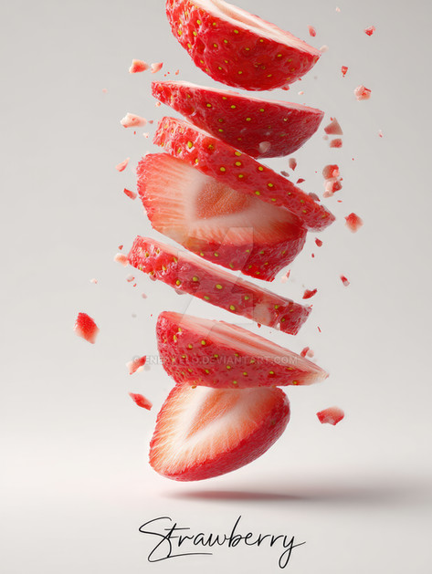 #render #digitalart #surreal #3d #abstract #clean #dessert #floating #food #foodart #fresh #fruit #healthy #hyperrealistic #juicy #kinetic #minimalist #motion #photorealistic #red #slice #strawberry #studio #vibrant #whitebackground