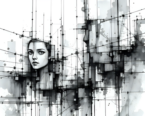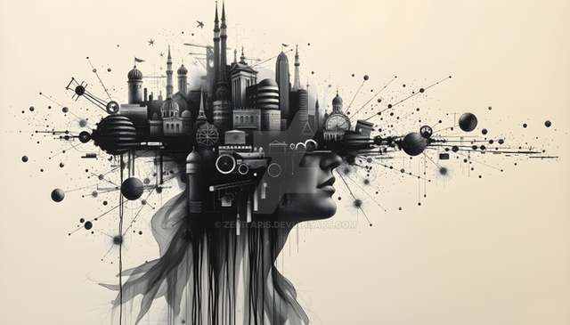 #portrait #surreal #abstract #architecture #artwork #city #collage #complex #concept #detailed #dots #face #forms #geometric #graphicart #hatching #human #illustration #intricate #juxtaposition #lineart #mind #monochromatic #profile #shapes #skyline #technicaldrawing #texture #visual #art