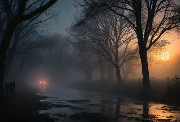 #spooky #fog #atmospheric #autumn #enchanting #fall #fallenleaves #fullmoon #goldenleaves #haze #moody #moonlight #mysterious #nightphotography #nightscene #outdoors #park #pathway #quiet #seasonal #solitude #streetlight #tranquil #tree #twilight #urbanlandscape #warmlight