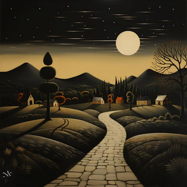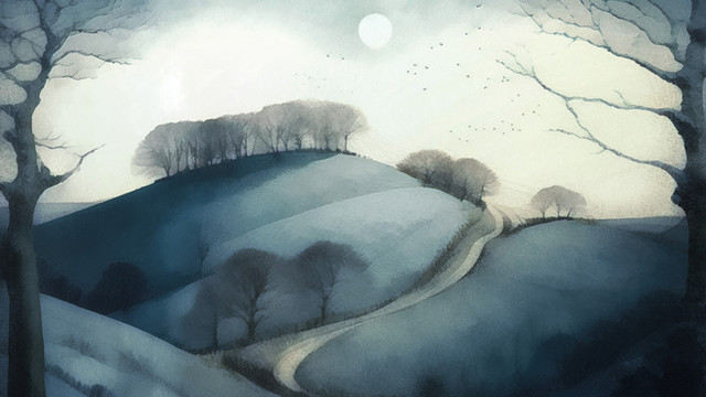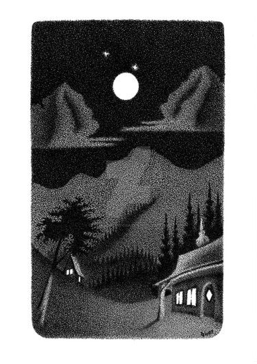 #forest #vintage #surreal #blackandwhite #contrast #illustration #landscape #light #monochrome #moon #moonlit #night #path #quiet #shadows #stippling #trees #winter