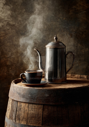 #photography #vintage #antique #beverage #brew #brewing #coffee #comfort #cup #dark #dramaticlight #hot #intimate #moody #morning #oldworld #pot #rustic #shadowy #steam #stilllife #tranquil #warm #woodenbarrel