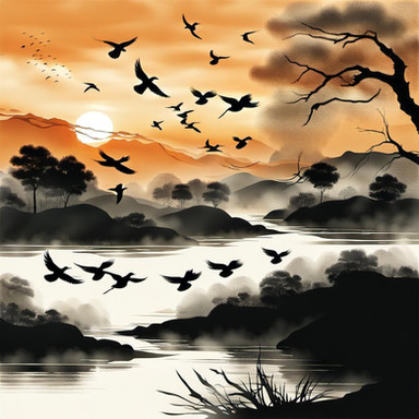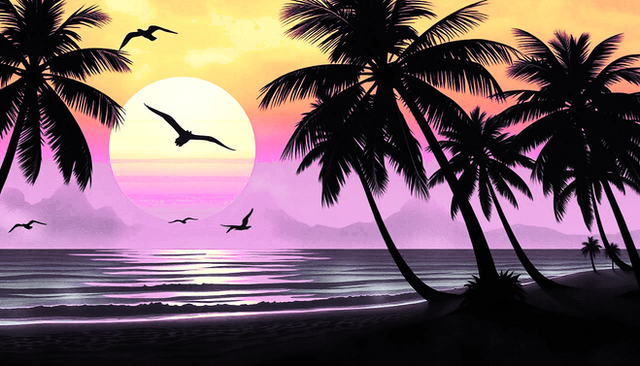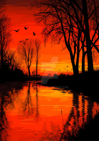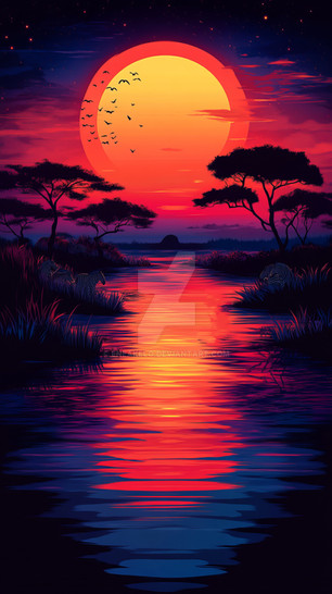 #digitalart #landscapepainting #sky #reflection #birds #dusk #graphic #journey #landscape #migration #nature #orange #outdoors #palmtrees #peaceful #river #serene #silhouette #simple #sun #sunset #travel #vibrant #warm #water #art