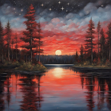 #digitalpainting #forest #reflection #beauty #atmospheric #blue #calm #colors #dreamlike #evening #gold #lake #landscape #nature #outdoors #painterly #peaceful #pine #pink #purple #serene #silhouette #sky #sunset #tranquil #trees #twilight