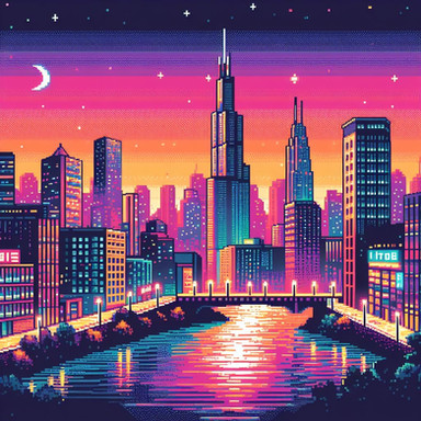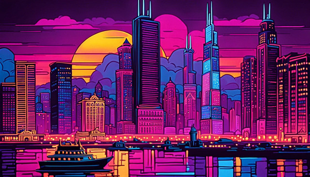 #architecture #bright #buildings #chicago #city #cityscape #clouds #colorful #illinois #illustration #modern #poster #reflection #river #riverside #sky #skyscraper #stylized #tourism #travel #urban #usa #vibrant #vintage #art