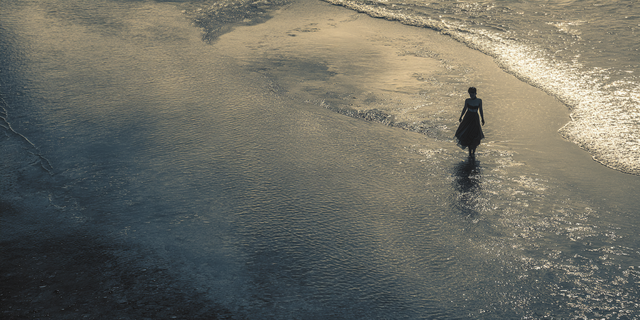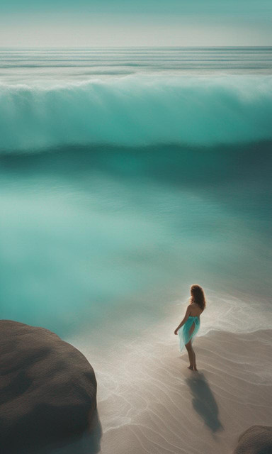 #figure #abstractbackground #backview #beachscene #bluedress #contemplation #figurativeart #fineart #freedom #oceanview #oilpainting #solitude #monochromaticblue #verticalcomposition #coastalart #emotionalpainting #texturedpainting #seascapepainting #modernimpressionism #impastotexture #artofthesea #atmosphericpainting #sereneart #womanatthebeach #wetsandreflection #figurativeseascape
