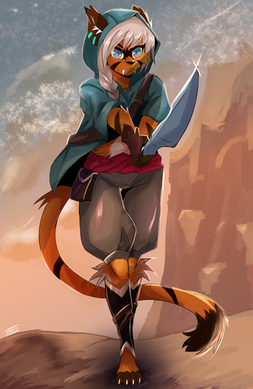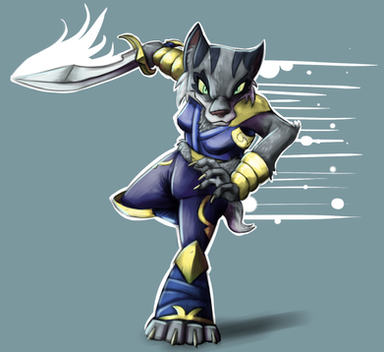 #anthro #bobcat #cat #cosplay #feline #female #furry #lynx #riven #energyvector #actionpose #anthropomorphic #prompt #rivenleagueoflegends #oc_tober2022