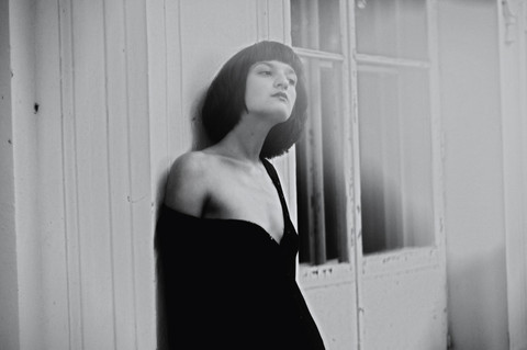 i like her dress. this proves how much more beautiful black and white photography is than colour. she looks so natural, howd you make her feel so comfortable? really good pic!