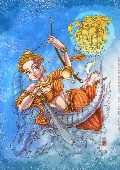 My first homework from Thai art for computer art subject.I wanna draw Durga in my style because I like powerful woman ^-^