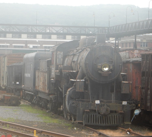Western Maryland scenic railroad 2-8-0 number 734 sits quietly in storage, much like her sisters did half a century ago with the coming of the diesel, and awaits the day when she will be run again.This was an emotional good bye to a dear friend, (one that I had known ever since I could remember anything. My first memory, (a scary one at that) is seeing a giant steel, fire breathing monster, that scared the living daylights out of me. It wasn't some blue tank engine, with a number one on it's side, out in Lancaster, Pa., no no, it was a magnificent black tender engine, with a 734 on it's side, and at first it was so scary. I had never seen a steam locomotive before. I had seen movies, like "The Train" and "Ace of Black Diamonds" but I had not anticipated so much noise, and size, and for a long time, 734 was the biggest locomotive I'd ever seen. She was the largest 2-8-0 in operation up until April, when she was retired.) for I knew I wouldn't see her in condition like this for a while. Soon the engine will be stripped of it's external appliances and wrapped in a tarp for winter storage.