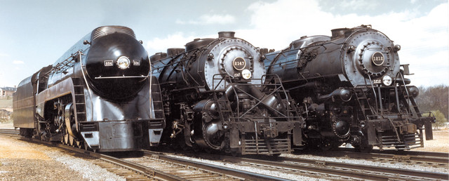 The Norfolk and Western Railroad was famous for having the biggest and the best in respects to steam locomotives. Here, we see the queens of their fleet at the VMT.From left to right: N&W 1218, N&W 611 and N&W 2156