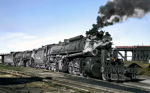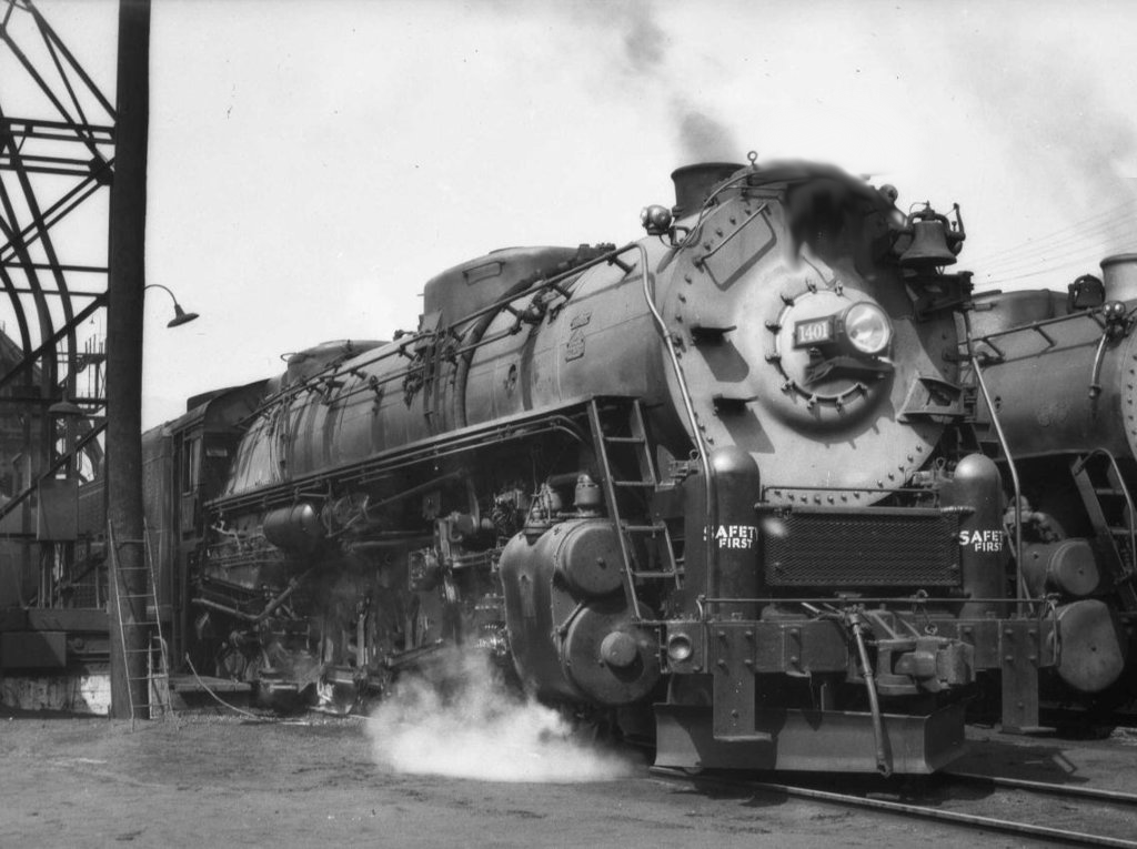 Brand new Western Maryland Railway Baldwin 4-8-4 number 1401 begins to steam away from the sanding tower in Ridgeley Yards, Ridgeley WV in 1948. Fine locomotives, these were, they say a baby could fire them, and they rolled smoothly, for they were equipped with roller bearings.Made with DeviantArt muro