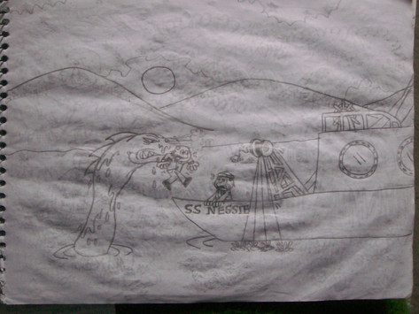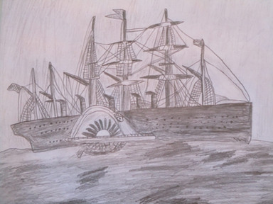 They saw the gaunt figures separating and rising out of the water as they retreated shoreward, and one of them raised the camera-like generator of the Heat-Ray. He held it pointing obliquely downward, and a bank of steam sprang from the water at its touch. It must have driven through the iron of the ship's side like a white-hot iron rod through paper.