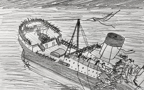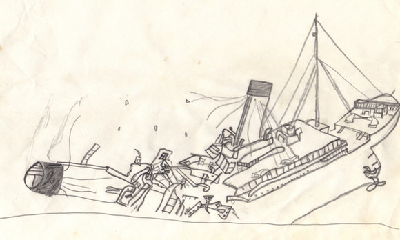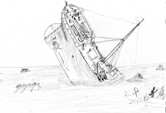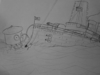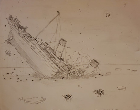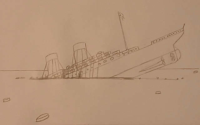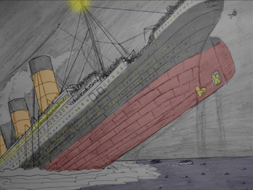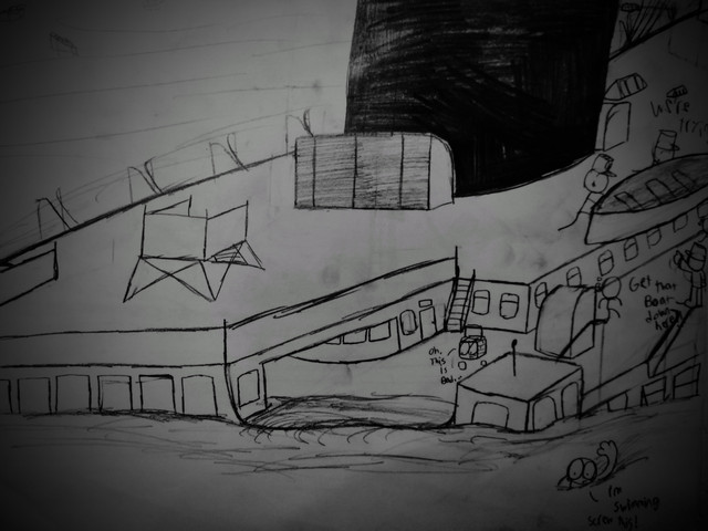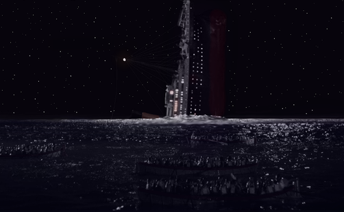 People slip on the steep decks and slide into the water, being swept away as the ship plunges deeper. Swimmers fight for survival as the water around them swirls. As if it wasn't already terrible, the funnel breaks free, as the list becomes too steep to stay upright. The unlucky swimmers look on in terror. Lightoller prepares himself for his death (which does not come until years later). Young newly weds struggle to swim away from the falling funnels path. They give out a shriek as the funnel comes crashing down. The funnel killed many swimmers when it fell.Here is a seen from "A Night to Remember" in which the fourth funnel falls.