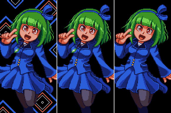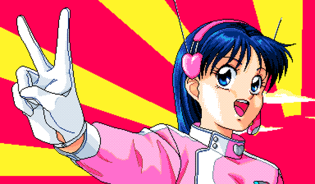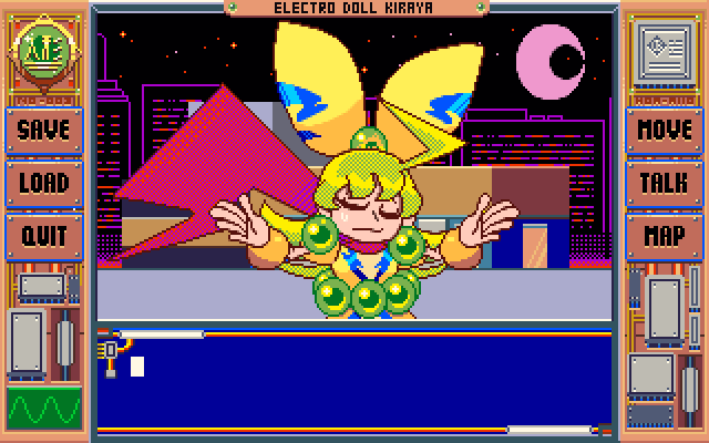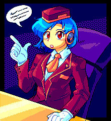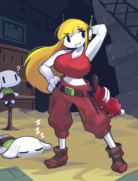 Some more pixel art of Rhea at her desk with her own BUDD, Dot.