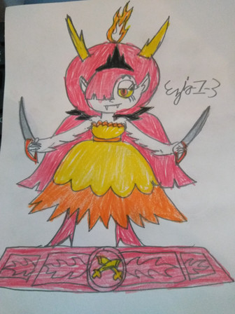 This is a sketch of Hekapoo, my favorite character from SVTFOE. I know she doesn't show up in the series as much us other character, but I personally think she's cool. An intersting character design, an impish, but not necessarily malevolent personality, etc.I tried coloring with markers this time, and any advice and criticism is appeciated.
