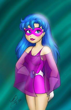 I don't know why I've gotten a kick out of uploading old stuff lately.This is an old, old drawing of Amber, probably from from around 1996. She didn't have the mask yet and I don't know why the heck I gave her a clear vinyl skirt, LOL. Yeah, her boots are a little different too. You can see how my overall style has progressed since then as this was an early attempt at an original character, not just copying from Disney or something.