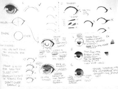 Sometimes people ask how I draw eyes. Here's a quick look at my approach (download for full size).I actually made this about a year and a half ago at the request of a friend. Each half was quickly sketched out on its own piece of paper and I've merged them together here.