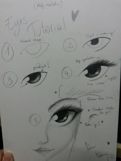 7. Add eyelashes and shadow to the white of the eye