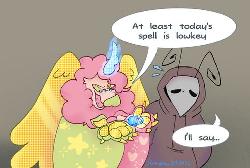 To try and describe him real quick, he's a suPer impatient but good hearted guy. others can see him as pretty unnerving with his weird way of smiling and multi ple arms and stuffs. He has an obsession with supernatural stuff, like voodoo dolls, and loves spooking people out all in good fun. he gives this impression like you've met before and acts extremely friendly like "oh nice to see you again!!! who are you??" he has strange ways of being friendly and a weird sense of humor, but only aims to please.