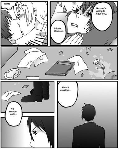 Pero aqui esta jeje, como ven la situacion se pone buena 1313 jaja okay no >u< se que mis fondos no son los mejores pero espero se entiendan las escenas jeje>3< Como saben este minicomic es el final alternativo del fic "Escondido entre rosas" El cual pueden leer aqui: