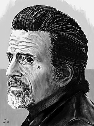 i love the use of heavy black in the hair and coat & lots of white space in the face as to not take away from it. you really captured his likenessΒ