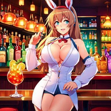 "Good evening sir! Welcome to the Red Rabbit Room. Please, take a seat and relax. How can we best serve you this evening?"Made with some combination with of a custom trained AI model, Stability Diffusion, NovelAI, Midjourney, Topaz Gigapixel, Topaz Denoiser, and/or miscellaneous Adobe software.