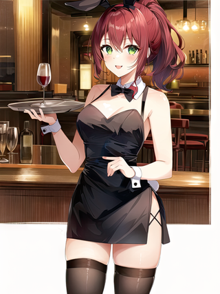 "Good evening sir! Welcome to the Red Rabbit Room. Please, take a seat and relax. How can we best serve you this evening?"Made with some combination with of a custom trained AI model, Stability Diffusion, NovelAI, Midjourney, Topaz Gigapixel, Topaz Denoiser, and/or miscellaneous Adobe software.