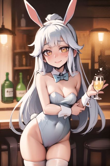 "Good evening sir! Welcome to the Red Rabbit Room. Please, take a seat and relax. How can we best serve you this evening?"Made with some combination with of a custom trained AI model, Stability Diffusion, NovelAI, Midjourney, Topaz Gigapixel, Topaz Denoiser, and/or miscellaneous Adobe software.
