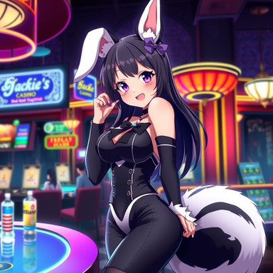 "Good evening sir! Welcome to the Red Rabbit Room. Please, take a seat and relax. How can we best serve you this evening?"Made with some combination with of a custom trained AI model, Stability Diffusion, NovelAI, Midjourney, Topaz Gigapixel, Topaz Denoiser, and/or miscellaneous Adobe software.