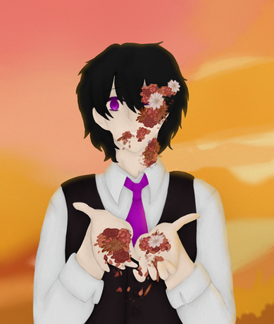 Then I put lilies as the final touch on his hand, since white lily symbolize both of death and love.