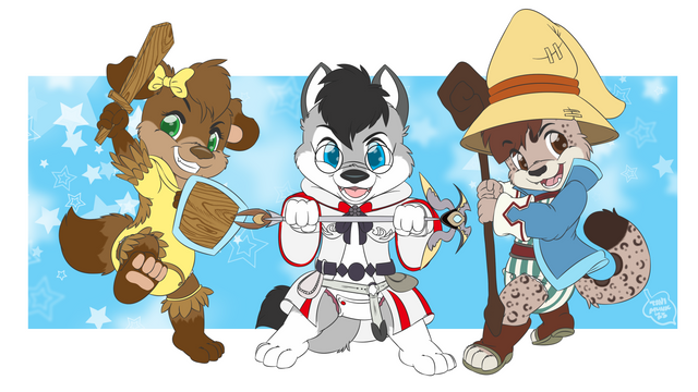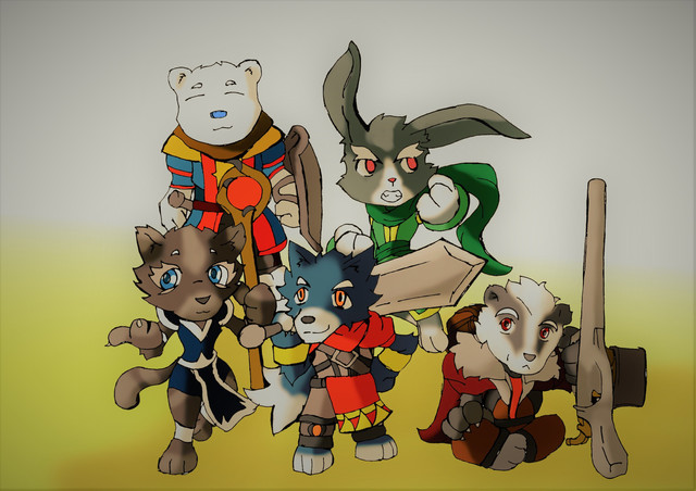 Wow, I love how you drew these characters. The colours are strong too, very good to look at, and I like the little shines on the outfits