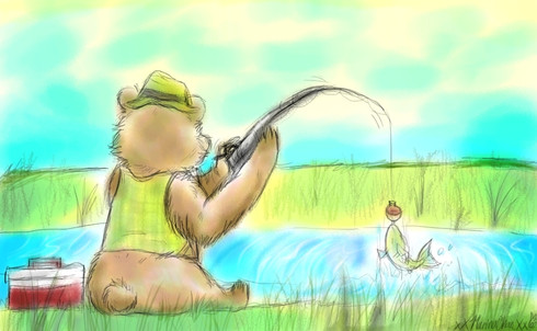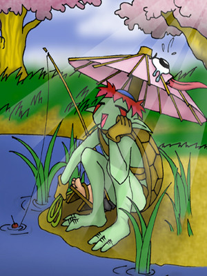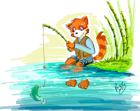 Tanuki must catch another fish again...