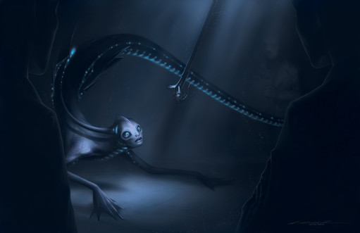 Ohhhh this has a similar feel to a favorite piece of mine. I really love the design of the creature, and this theme in general <3 Well done!