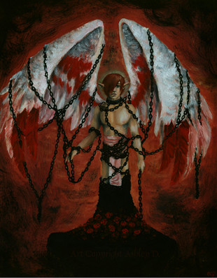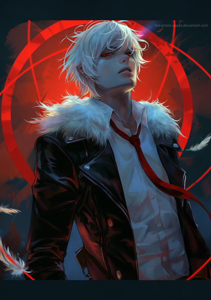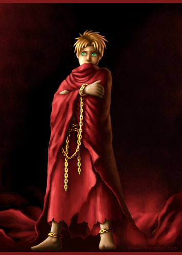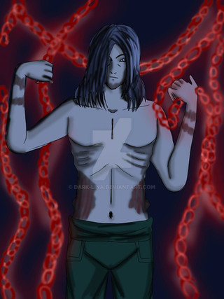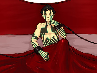 I decided to do a really quick drawing after this rather interesting dream I had...This guy was pretty much the main character in a very vivid and surprisingly coherent story, and I just really wanted to draw him. Might as well tell you guys what exactly the dream was...It was also one of those dreams where you are the character, but at the same time, you're sort of watching them. So you know their thoughts and memories, and you can control their actions and for all intensive purposes are that character, but you're also aware of everything else going on around them that they might not necessarily see.He had really dark, kinda unruly hair, but there was a stripe of hair on the top of his head that was like...a different texture, almost. He was kind of inspecting it in the mirror (which is how I know for sure what he looked like), because it was something new. Apparently, he was starting to show signs of being something or other, something to do with his bloodline. His mother was the one who sorta told him this, I remember, as she sorta came into the room...Both she and the boy (he looked kinda young...somewhere in his teens, maybe?) looked kinda asian. I also remember the world 'immortal' being mentioned, at one point during the conversation. Another thing about the boy was that he had really interesting eyes. The whites were all black, and the irises were red, and didn't have pupils. They kinda faded into the black, too, and had this almost glowy quality. I remember those eyes pretty darn clearly...heh...But then something happened, and the details are kinda foggy here, but it did involve him being separated from his mother. This whole setting was very...old-world. Like...ancient Rome, or Greece or something...I don't quite remember if the mother came, either bringing or having her son in this new place, or if the boy was brought to this place alone, and the mother stayed behind in whatever land they were originally from. That info is a bit...hazy...But either way, apparently the boy was part of the servant/slave class (not by choice, of course), and had been grouped with a bunch of other people and brought through these big wooden gates, though they only opened a narrow bit, so people had to go through single-file. I remember he kept his eyes down a lot, though I still sorta knew what was going on. There was a lot of white and grey stone in the next area...the sky was kind of a grey-blue, cloudy color, too...overcast and stuff...There were other people there, like rich people, and people dressed in armor/uniforms - they were the buyers, and there was also a big, rectangular stone platform, as well, though it wasn't all that high. I remember the boy was wearing kinda simple clothing, kinda faded, kind of a faint brown or gray color, and I also remember there being something around his neck, as well. The person in charge of selling/hiring out people said some stuff about different people in the group, like what they might be good for and all that...I remember he mentioned that the boy would probably be a nice addition as a household servant or somesuch, because he had softer, 'pretty' features, in addition to being considered 'exotic', as opposed to the more European look that everyone else had. In the end, the boy ended up going with a man who was dressed in what looked very much like Roman armor, though whether or not he was the actual buyer or just his/her representative, I'm not sure. Everything's very vague after that, 'cause I kinda started slowly waking up...heh...
