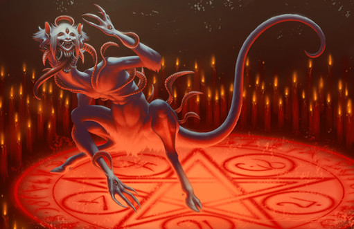 An illustration I did for a class...I had to come up with a creature described in the prompt as being massive, toad-like, and the color (and texture) of rusting metal. It was also described as having rows of teeth. It was supposed to live in a mine, surrounded by rusting equipment. I decided to incorporate insect traits as well.Related content