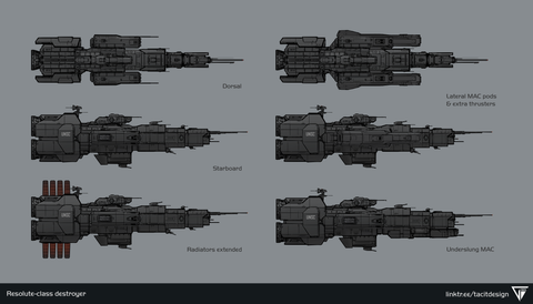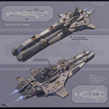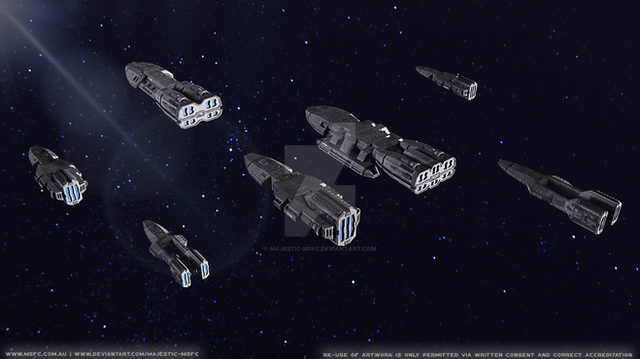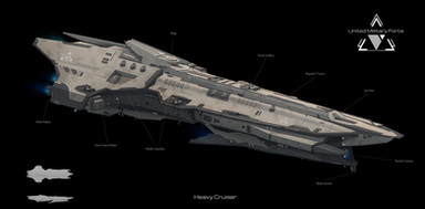 I can see some definite Homeworld and Battlestar Galactica references in this design. Very nice, and definitely gives that militaristic feel.