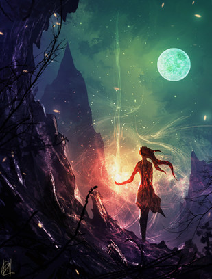#magic #sparks #wizard #fire #cliff #cloak #dust #rings #sorceress