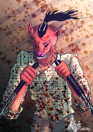 #batman #blood #dark #dc #dccomics #fanart #horror #ink #knife #mask #pig #professor #pyg #violence #dccomicsfanart #professorpyg