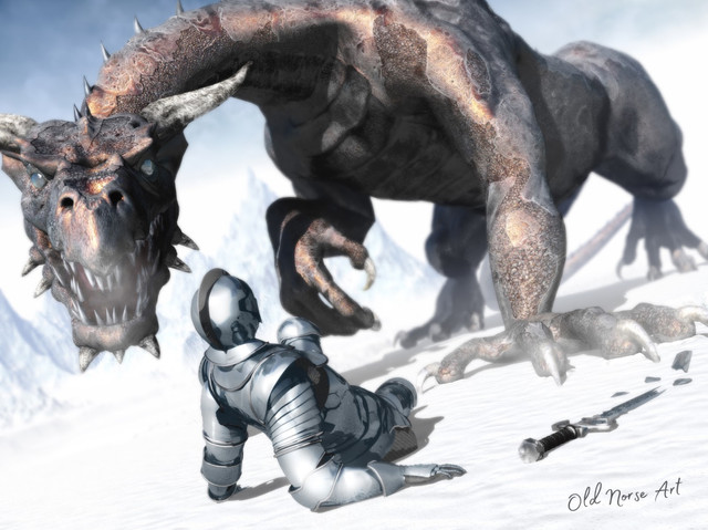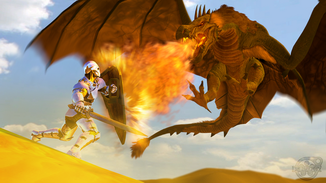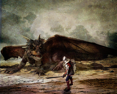 Wow. That's amazing. My money's on the dragon. He has the position, power, and size advantages. While the knight has a sword and some shiny armor.