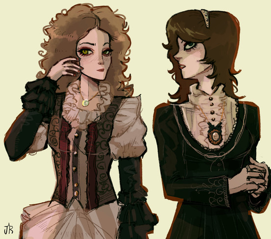 No, this is a great piece, much like the others. Kinda the formal-event outfitting for the dynamic duo of Piltover, and in appropriate style for the steampunk city. I really like this, mainly because it evokes some kind of story. What's the event, what's the story behind the pink brooch, why does Vi go for the pants-and-vest (Technically a girdle, but semantics at the point.) as opposed to a dress?