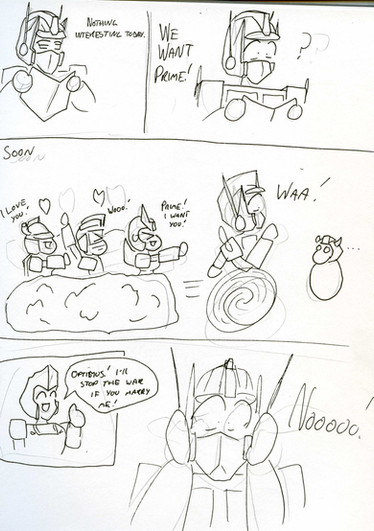 XD With the Wrckers part, I found it kinda sad that Optimus wouldn't even bother to learn there nmes. "Wreckerz!!! Nuu, I'm falling..."