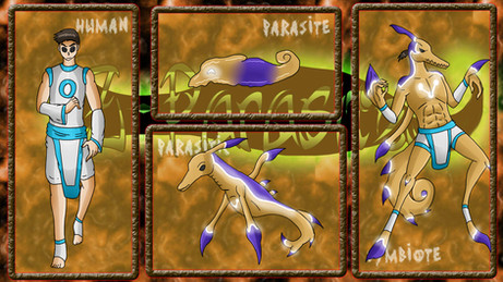 Backstory: He and his brother were simple street kids. They had a cool apartment in the slums where they spent their days. They actually got infected at the same time when the two parasites were seen traveling together. They did everything together so this was really no surprise. The two boys easily adapted to their new forms and managed to continue their everyday lives until they were attacked while at a Night Bar. After that they joined the harmony after being rescued by Keira, Katie, and Derek.