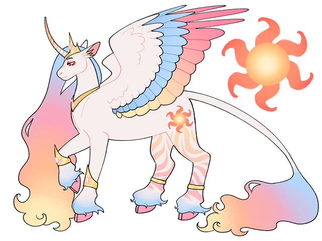 wow some actual pony content? thats crazy! This is to go along with my older Luna design and plays off some of my other Celestia designs ive done in the past! Celestia has a lot of magic in her body which manifests in different ways, primarily through her hair and the way the colors change with time and her magic that channels through her wings horns and hooves. Celestia has pink and dark purple streaks in her hair from both raising the moon and wielding the elements of harmony, she took up the mantel of both of those princess jobs without Luna or Twilight to do any of that work and it manifests in her physically. Raising the moon was so taxing for her her body coped by growing a third horn alongside her original prealicorn horn and her alicorn magic horn, which also shows signs of use by using the elements of harmony. Celestia's wing are crane wings! I changed up her magic color from pink to blue to contrast with lunas yellow more and i think it fits more with giving her a sky theme. Celestia has a LOT of hair and I don't think she even remembers the last time she cut it, usually she puts it up so its more manageable but if it gets out of its braids or ties it starts floating up and out and is pretty hard to keep track of, she does it from time to time for fun. Her casualwear is much more ornate than Luna's as she is even more of a public figure and needs to keep up appearances, she just likes the look too she thinks its fun to wear a lot of clothes and jewelry and over this fit she likes to wear a lot of sheer shawls.Related content